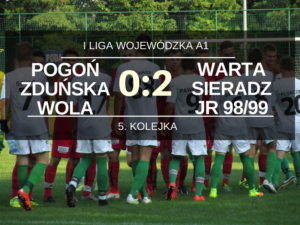 Warta Sieradz Jr98/99 pokonała na wyjeździe drużynę Pogoni Zduńska Wola 0:2 w ramach 5. kolejki I Ligi Wojewódzkiej.