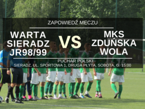 Już w najbliższą sobotę o g. 15:00 Warta Sieradz Jr98/99 podejmie drużynę MKS Zduńska Wola w III rundzie Pucharu Polski.