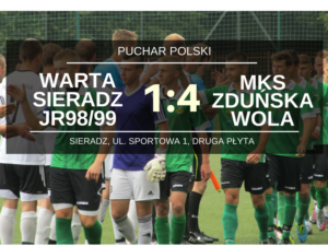 Warta Sieradz Jr98/99 odpadła w III rundzie Pucharu Polski z MKS Zduńska Wola 1:4.