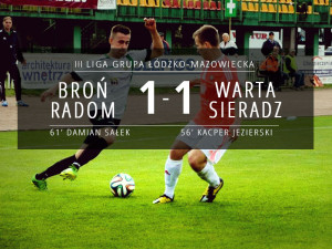 W przedostatnim spotkaniu rundy jesiennej piłkarze Warty Sieradz zremisowali na wyjeździe z Bronią Radom 1:1. Wszystkie bramki w tym meczu padły w drugiej połowie.