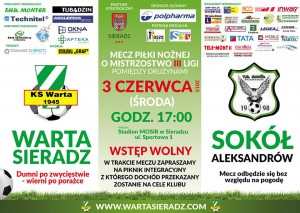 W swoim ostatnim meczu w sezonie 2014/2015 Warta zremisowała w Sieradzu z Sokołem Aleksandrów 2:2. Był to jednocześnie ostatni mecz Tomasza Kmiecika w roli trenera biało-zielonych.