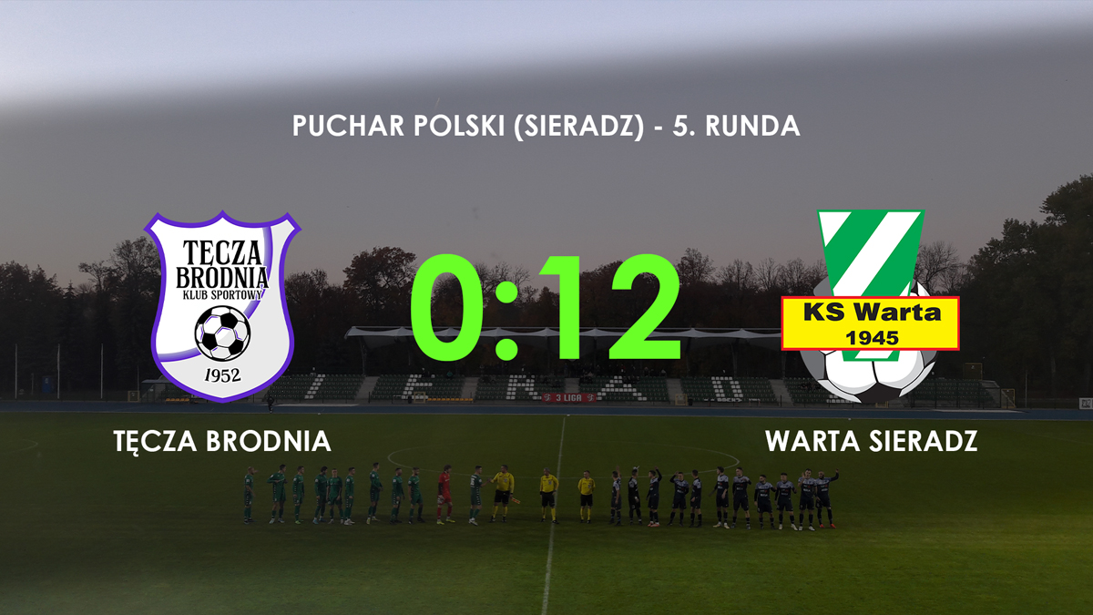W meczu 5. rundy okręgowego Pucharu Polski drużyna Warty Sieradz pokonała na własnym stadionie 12:0 Tęczę Brodnia. Cztery gole dla Biało-Zielonych strzelił Łukasz Chojecki w pierwszej połowie.