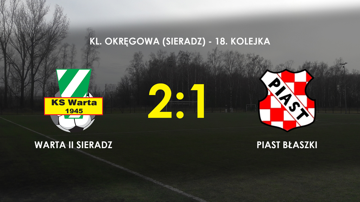 W 18. kolejce sieradzkiej klasy okręgowej Warta II Sieradz pokonała u siebie 2:1 Piasta Błaszki. Oba gole Biało-Zieloni strzelili w 46. minucie, choć w różnych połowach.
