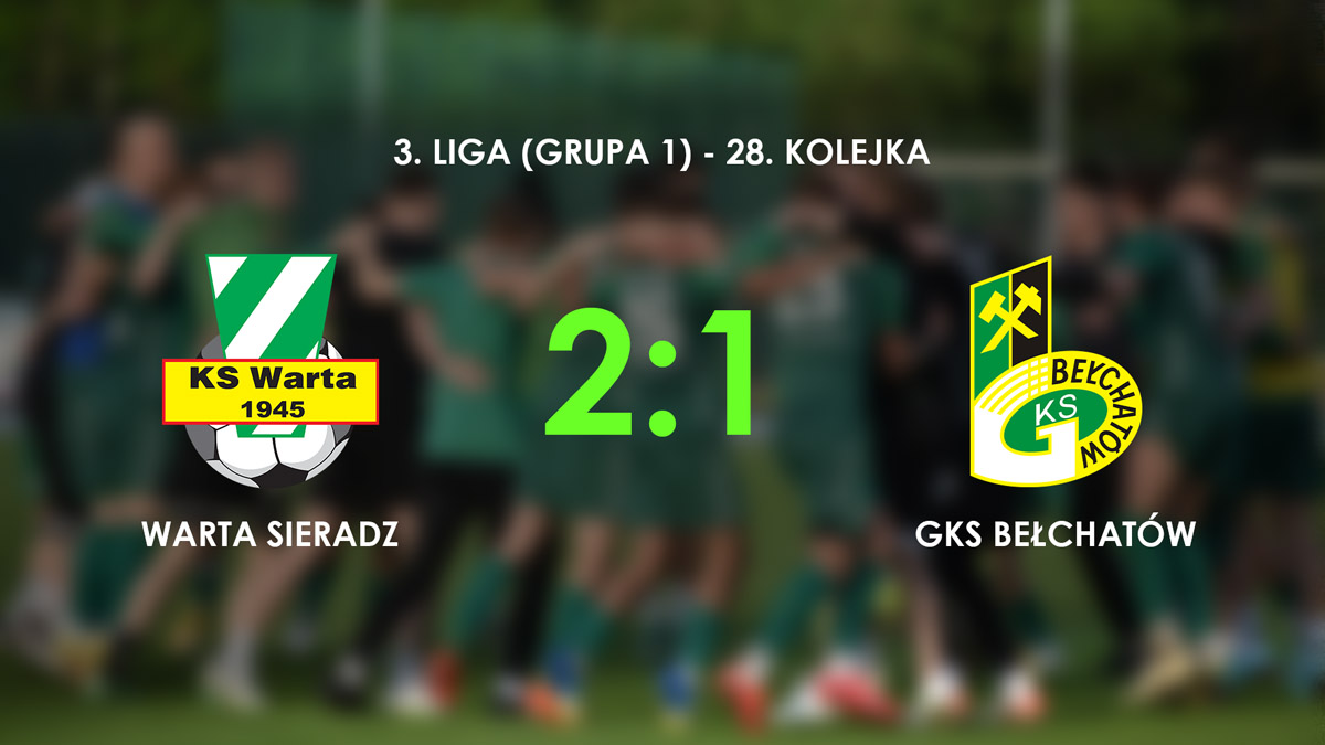 W meczu 28. kolejki rozgrywek 3. Ligi (grupa 1) Warta Sieradz pokonała u siebie 2:1 GKS Bełchatów! Gole dla Biało-Zielonych strzelili Krystian Adamiak i Jakub Piela.