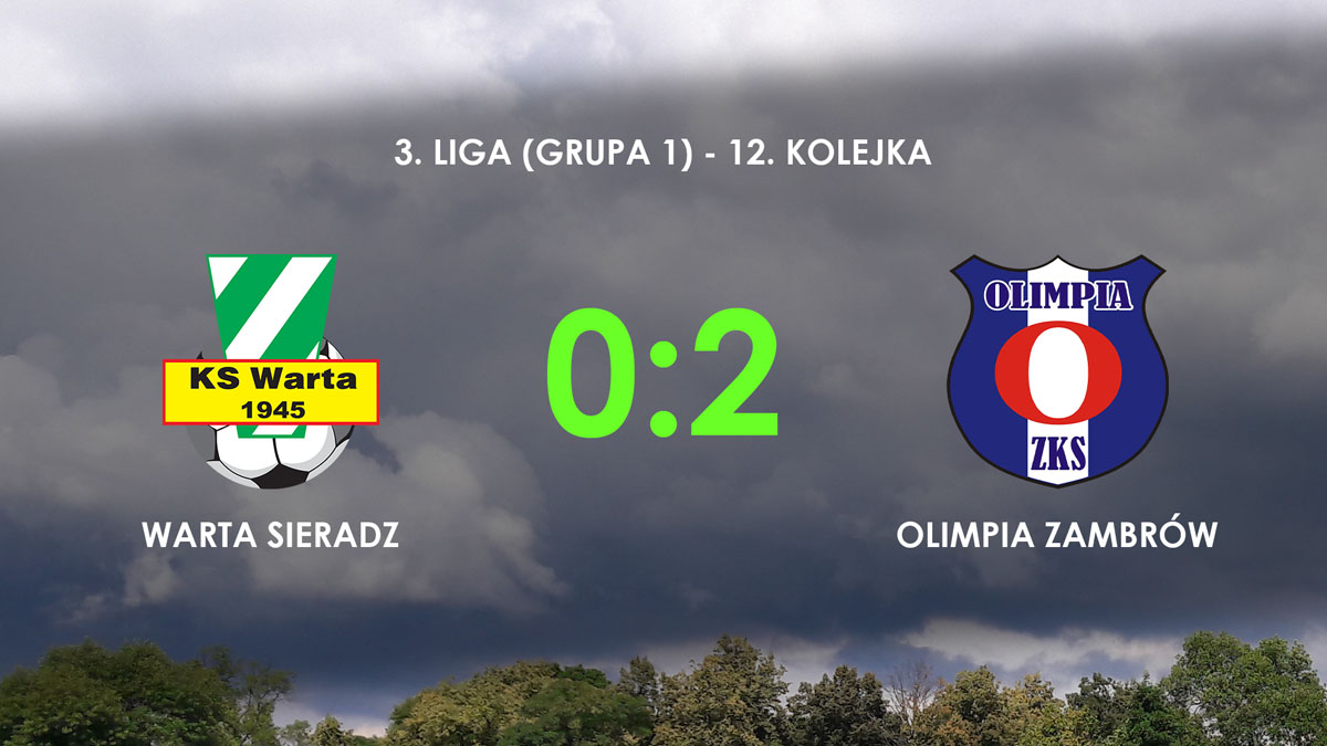 W meczu dwunastej kolejki rozgrywek 3. Ligi (grupa 1) Warta Sieradz przegrała u siebie 0:2 z Olimpią Zambrów. Gole dla gości padły zza pola karnego na początku drugiej połowy.