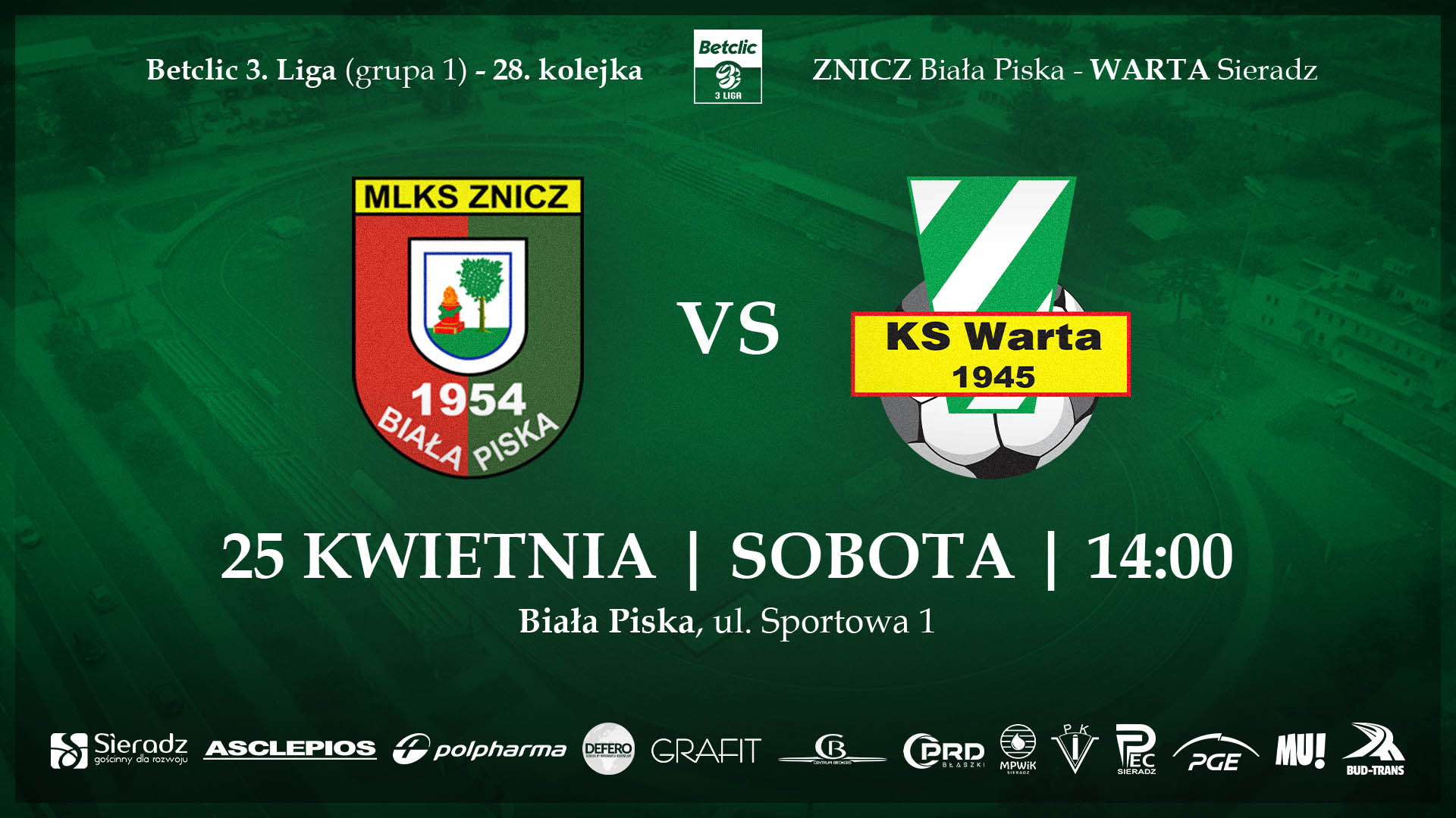 W sobotę, 25 kwietnia o 14:00, w ramach 28. kolejki Betclic 3. Ligi (gr. 1), Warta Sieradz zmierzy się na wyjeździe ze Zniczem Biała Piska.