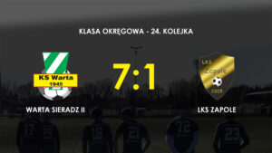 W meczu 24. kolejki sieradzkiej klasy okręgowej Warta Sieradz II nie dała żadnych szans ekipie LKS Zapole, zwyciężając na własnym terenie aż 7:1.… czytaj więcej