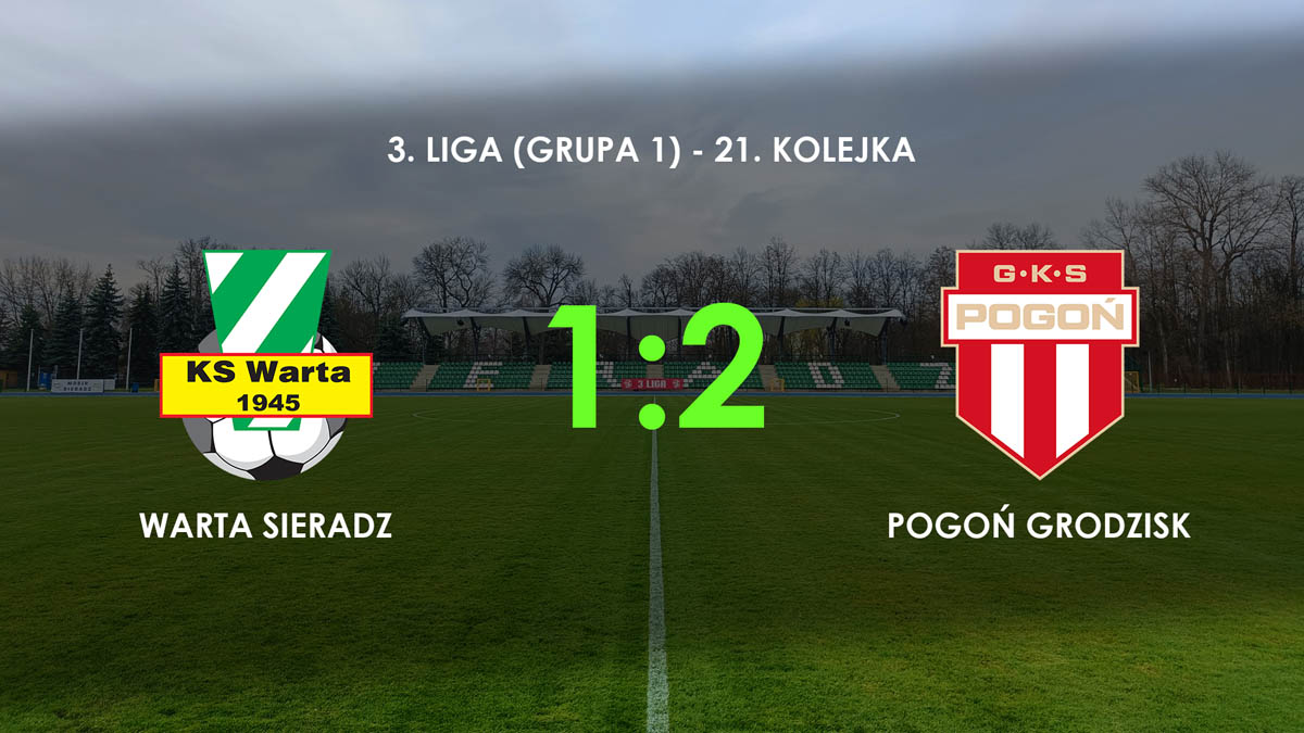 W meczu 21. kolejki rozgrywek 3. Ligi (grupa 1) Warta Sieradz przegrała u siebie 1:2 z Pogonią Grodzisk Mazowiecki. Gola dla Biało-Zielonych strzelił Bartłomiej Kręcichwost z rzutu karnego.