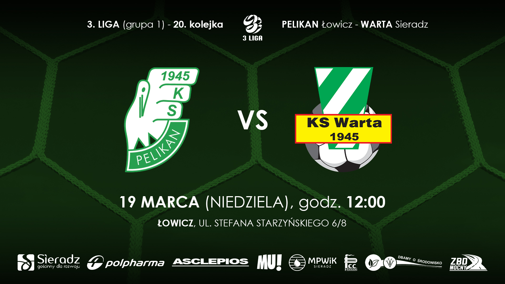 Przed Wartą Sieradz trzeci wiosenny mecz ligowy. W 20. kolejce rozgrywek 3. Ligi (grupa 1) Biało-Zieloni zmierzą się na wyjeździe z Pelikanem Łowicz. Mecz zaplanowano na 12:00 w niedzielę.