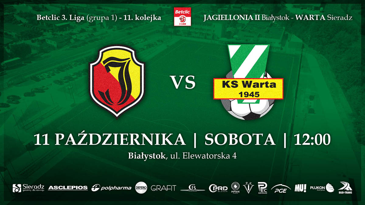 W sobotę, 11 października o 12:00, Warta Sieradz rozegra kolejny mecz Betclic 3. Ligi (gr. 1)! W ramach 12. kolejki Biało-Zieloni zmierzą się na wyjeździe z Jagiellonią II Białystok. Transmisja na kanale JagaTV!