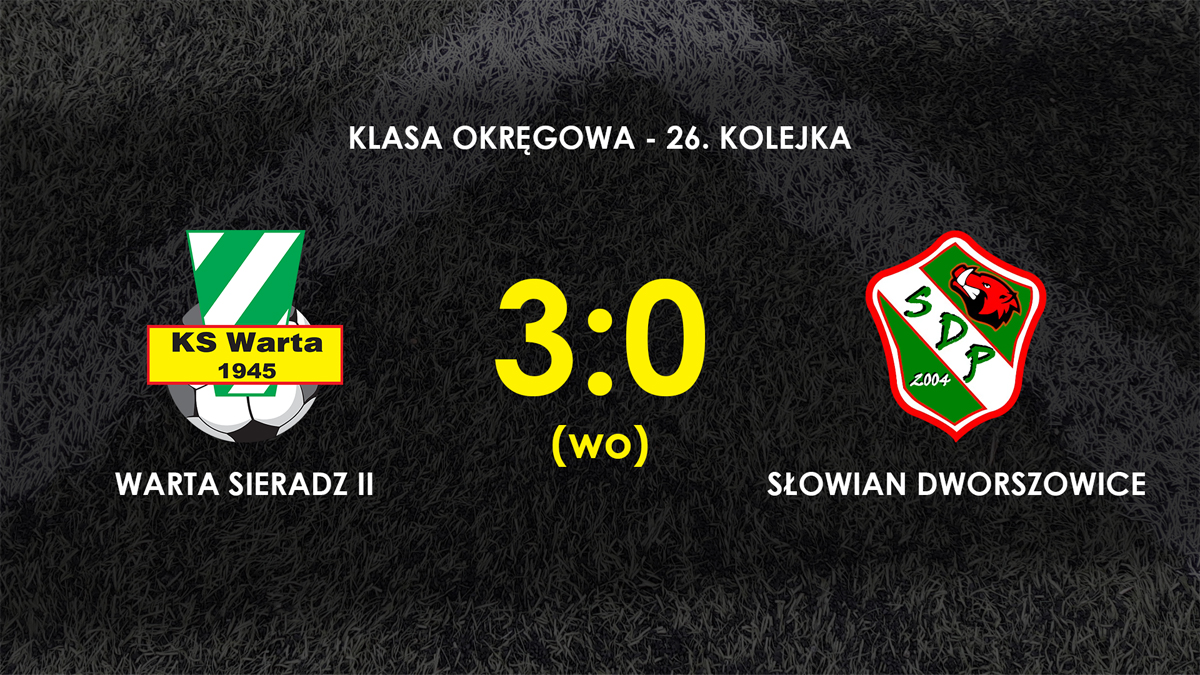 Spotkanie 26. kolejki sieradzkiej klasy okręgowej pomiędzy Wartą Sieradz II a Słowianem Dworszowice zostało oddane walkowerem przez przyjezdnych.