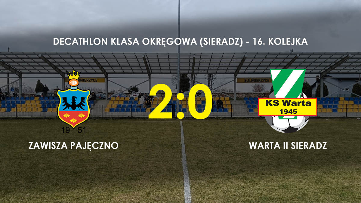 W meczu 16. kolejki sieradzkiej Decathlon Klasy okręgowej (grupa 3) Warta II Sieradz przegrała na wyjeździe 0:2 z Zawiszą Pajęczno. To pierwsza porażka Biało-Zielonych w tym sezonie.