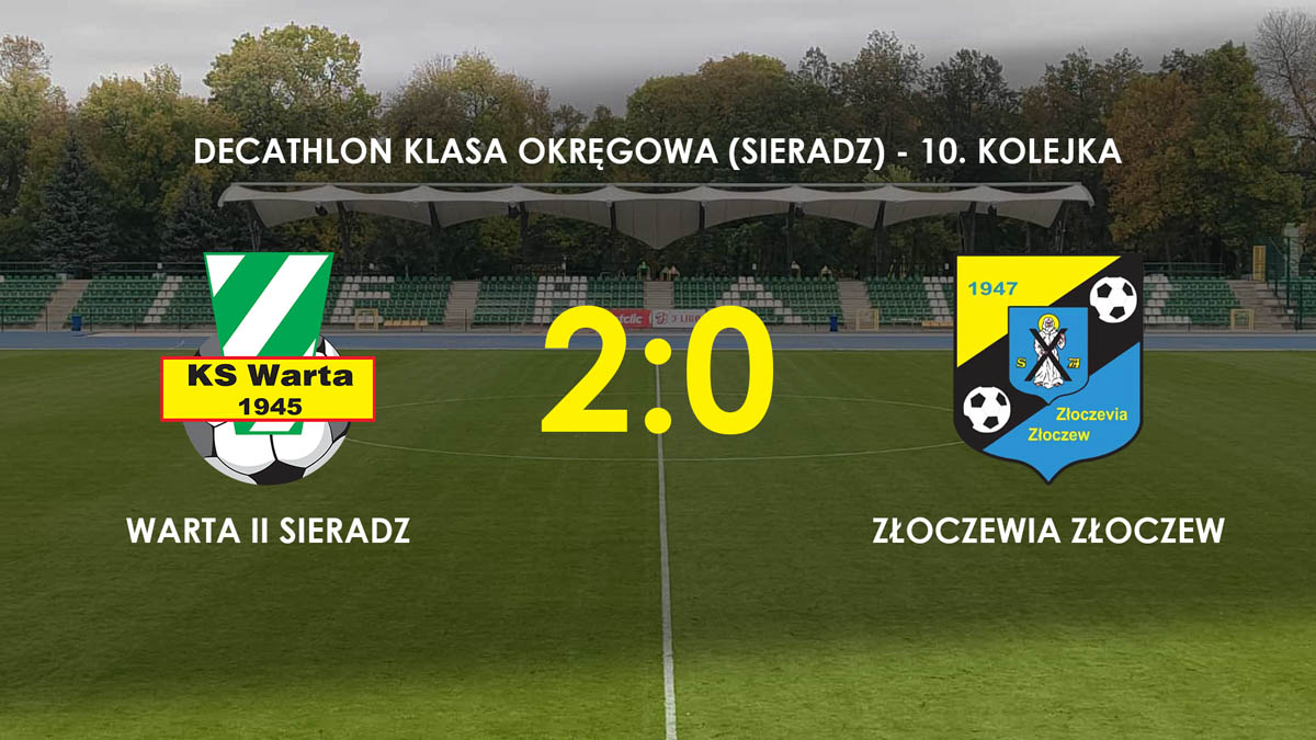 W meczu 10. kolejki sieradzkiej Decathlon Klasy okręgowej Warta II Sieradz wygrała u siebie 2:0 ze Złoczewią Złoczew. Gole strzelili Kamil Pluta i Wiktor Płaneta.