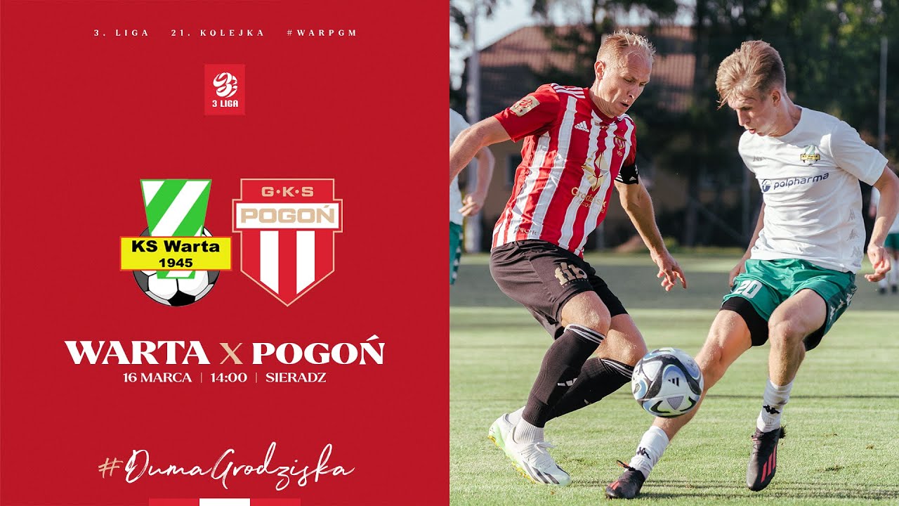 Zapraszamy do oglądania meczu 21. kolejki 3. Ligi (gr. 1) pomiędzy Wartą Sieradz a Pogonią Grodzisk Mazowiecki. Początek o godzinie 14:00. Transmisję realizuje kanał klubowy gości.