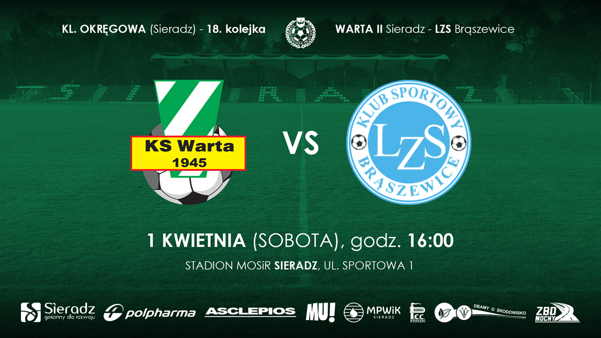 Lokalnym szlagierem będzie starcie Warty II Sieradz z LZS Brąszewice na głównej płycie MOSiR Sieradz. To pojedynek trenerski piłkarskich legend Warty: Łukasza Mitka i Marcina Kobierskiego, w którym na boisku obejrzymy wielu wychowanków Biało-Zielonych. Wstęp wolny, zapraszamy!