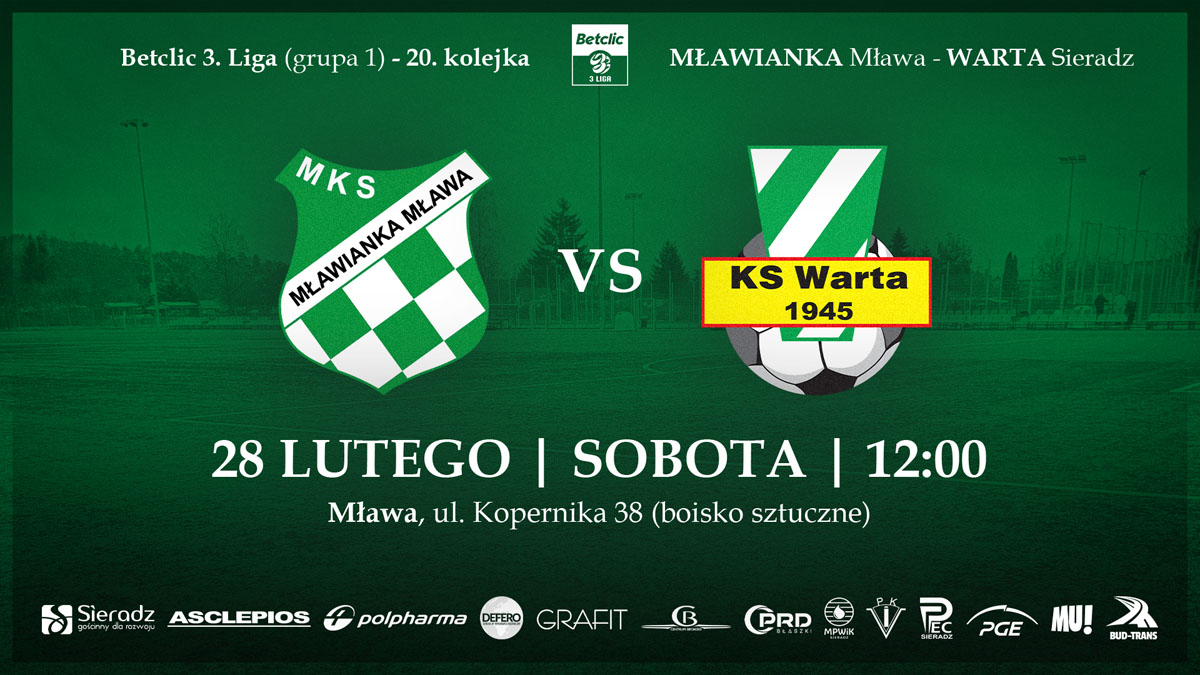 W sobotę, 28 lutego o 12:00, wracamy do gry w Betclic 3. Lidze (gr. 1)! W ramach 20. kolejki Warta Sieradz zmierzy się na wyjeździe z Mławianką Mława, na boisku ze sztuczną nawierzchnią przy ul. Kopernika 38.