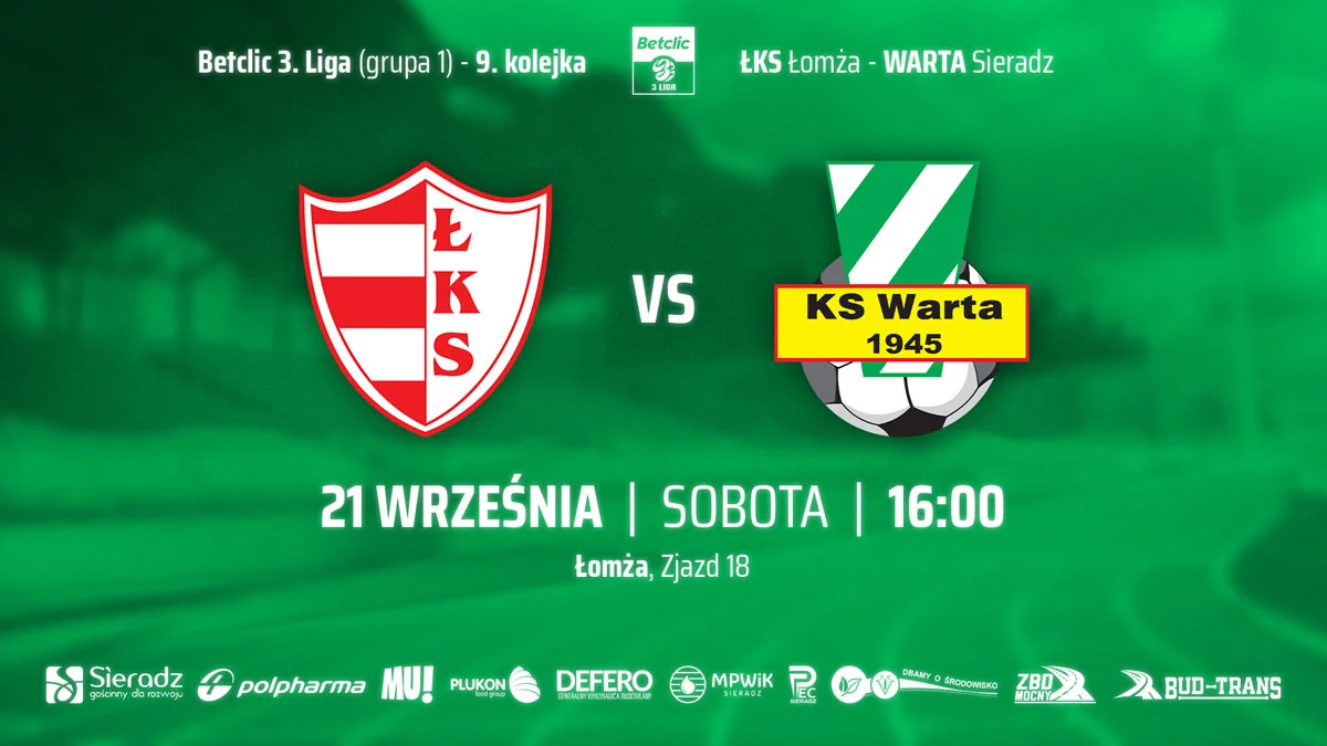 Przed nami mecz dziewiątej kolejki Betclic 3. Ligi (grupa 1): ŁKS Łomża – Warta Sieradz! Pierwszy gwizdek w sobotę 21 września o 16:00 w Łomży.