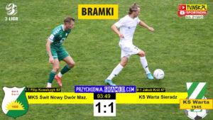 Zapraszamy do obejrzenia skrótu meczu pomiędzy Świtem Nowy Dwór a Wartą Sieradz (1:1), rozegranego w ramach 8. kolejki rozgrywek 3. Ligi (grupa 1). Materiał przygotowała Telewizja NSK.… czytaj więcej