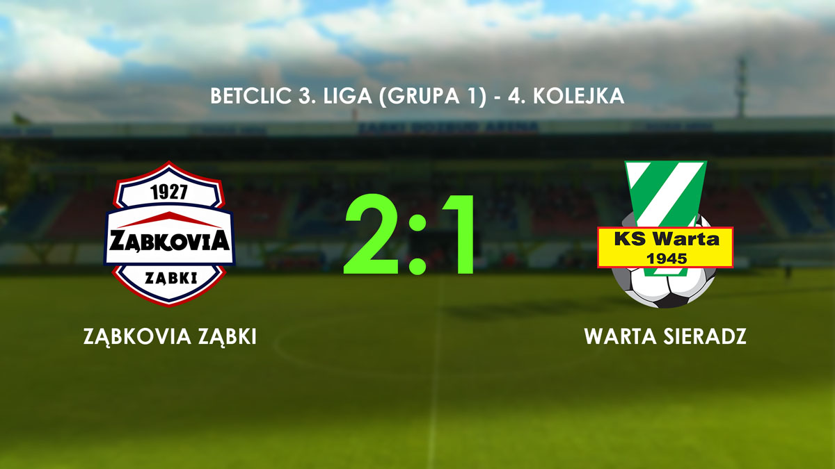 W meczu 4. kolejki Betclic 3. Ligi (grupa 1) Warta Sieradz przegrała na wyjeździe 1:2 z Ząbkovią Ząbki. Gola dla Biało-Zielonych strzelił Damian Ślesicki z rzutu karnego.