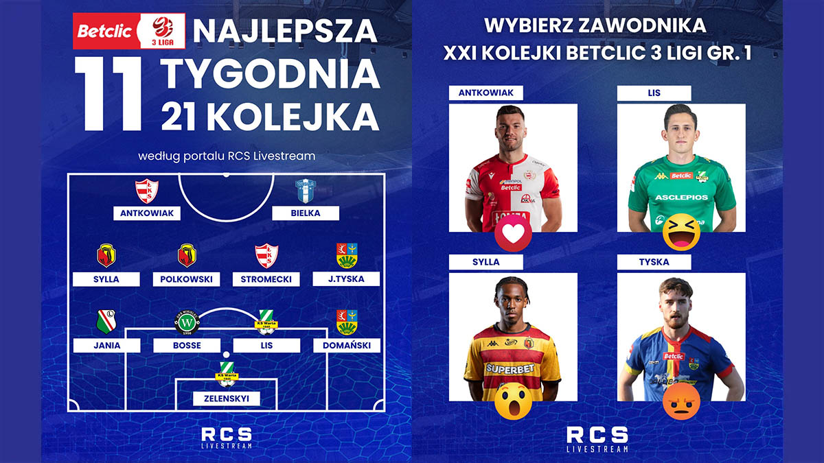 🎥 Jedenastka 21. kolejki Betclic 3. Ligi (gr. 1) kanału RCS Livestream: